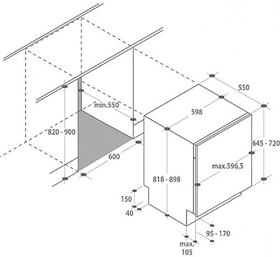 Высота для встраивания, мм820
